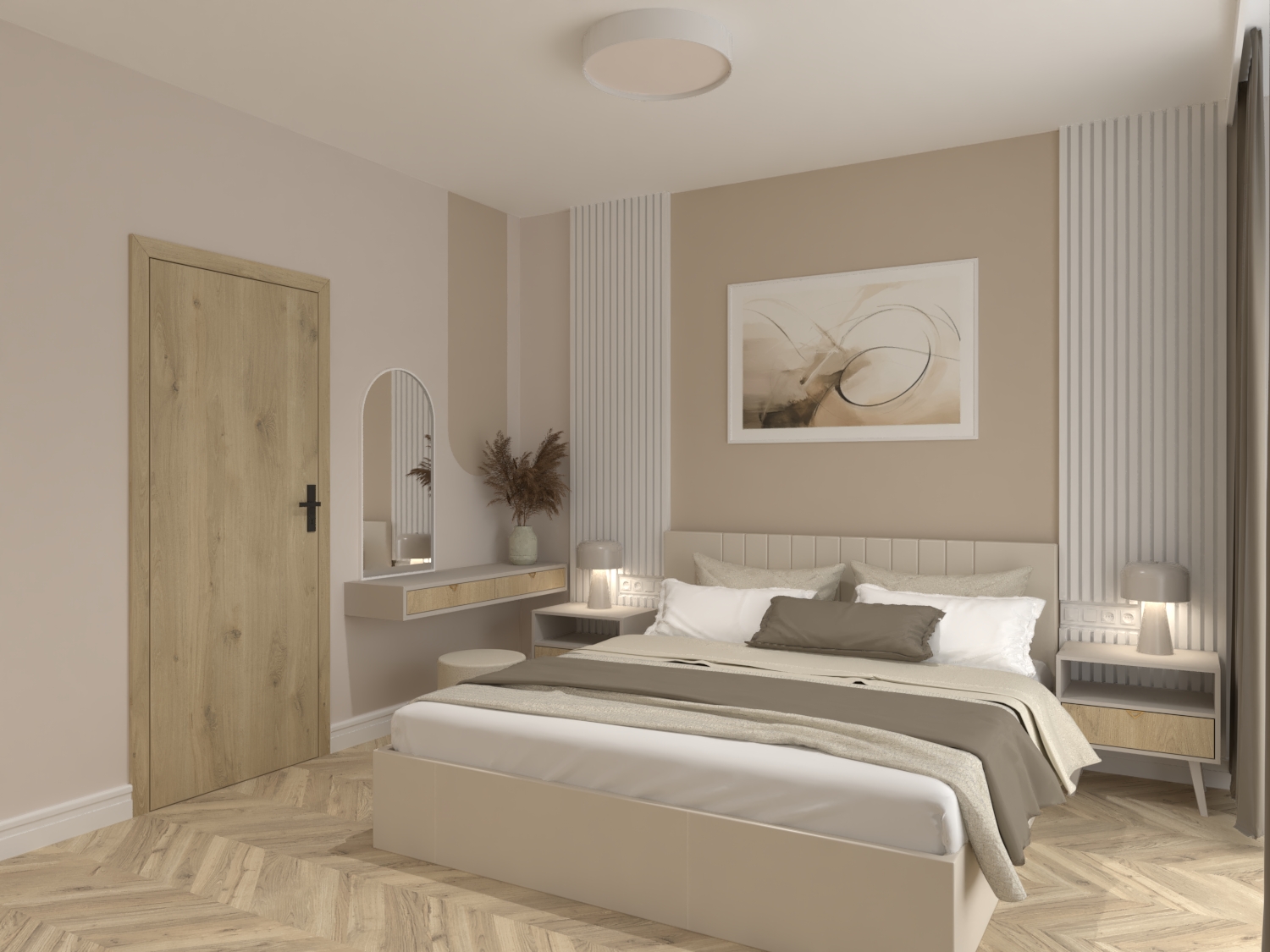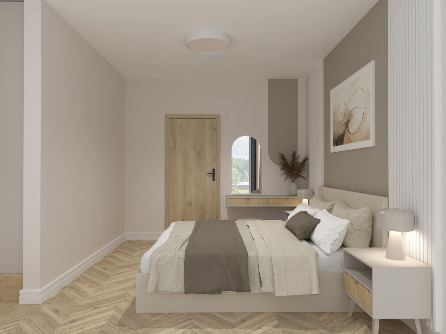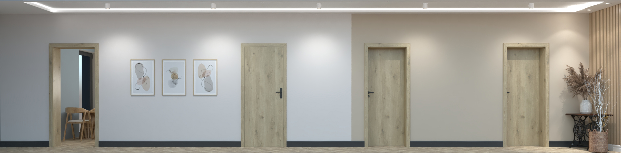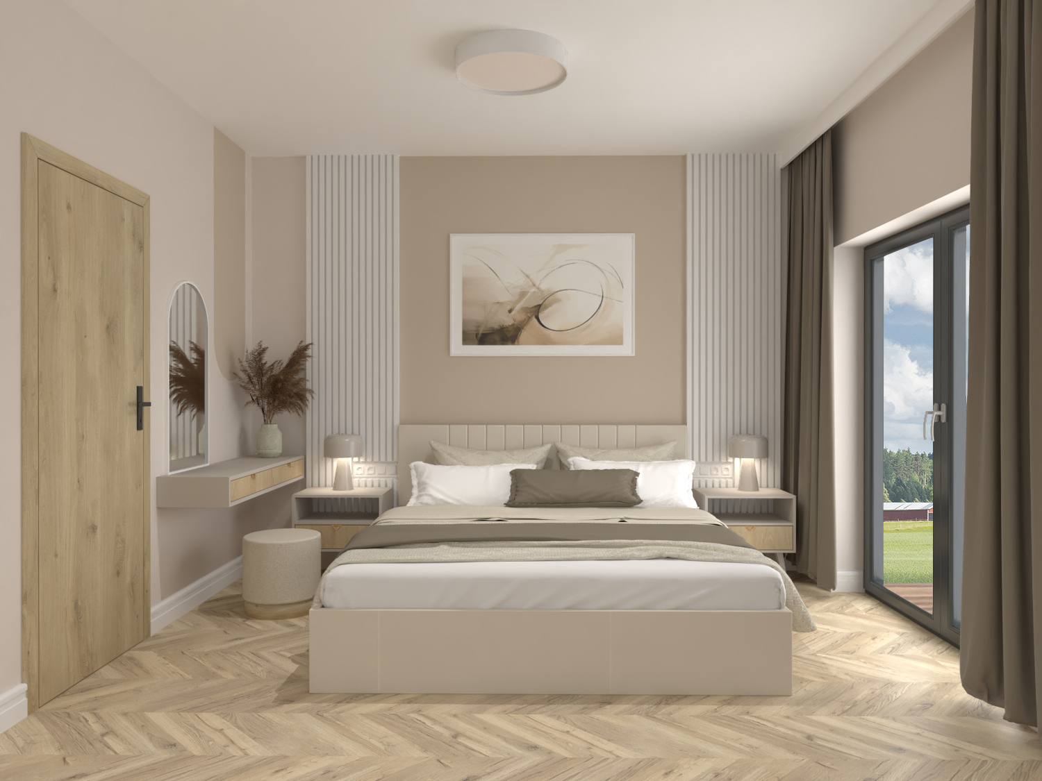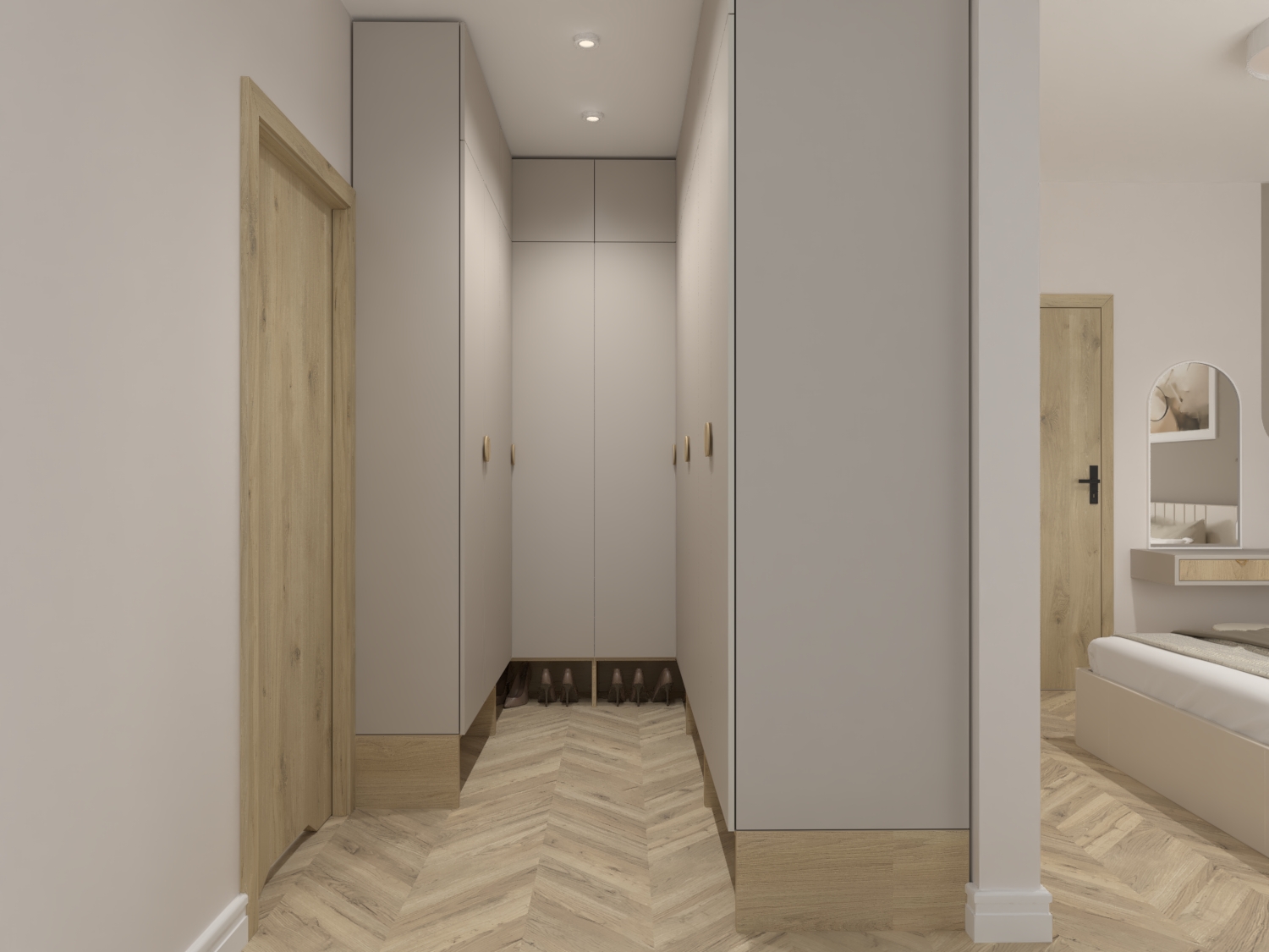 Projekt wnętrza domu łączy nowoczesność z odważnymi akcentami kolorystycznymi. W salonie i kuchni dominują głębokie odcienie niebieskiego, które nadają przestrzeni elegancji i spokoju. Meble o prostych formach kontrastują z wyrazistymi kolorami, tworząc dynamiczną, ale harmonijną całość. Łazienki wyróżniają się oryginalnymi połączeniami kolorów oraz płytek. Całość tworzy przestrzeń pełną energii, ale jednocześnie wyważoną i komfortową.