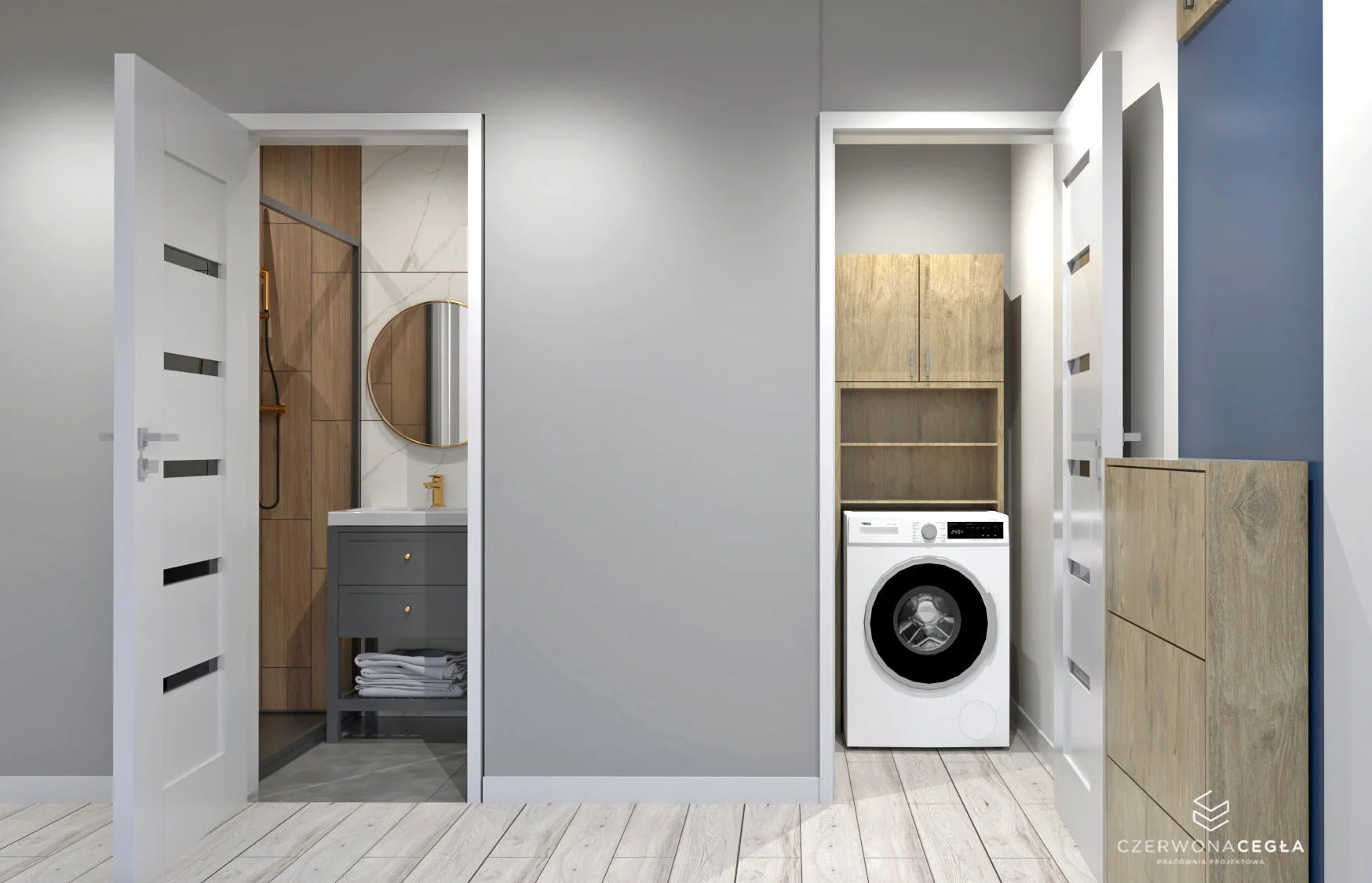 W aranżacji małej łazienki koniecznie wykorzystaj wnęki – czy to na kabinę prysznicową, wannę z funkcją prysznica, czy na pralkę i suszarkę. Zamiast płytek, których prawidłowy montaż „skradnie” kolejne metry mieszkania, postaw na wodoodporną farbę lub dedykowaną tapetę. Pod umywalka koniecznie zamontuj szafkę z szufladami – idealne miejsce na środki czystości i przybory kosmetyczne.